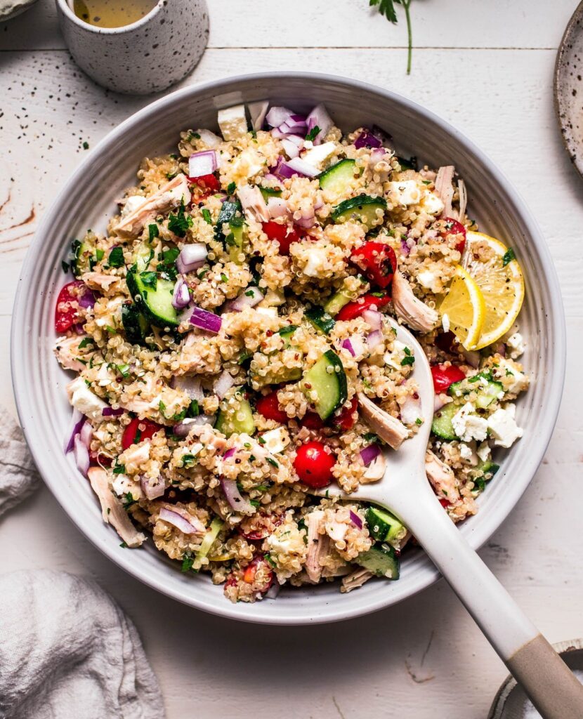 This chicken quinoa salad is a nutrient-dense meal packed with protein and fiber. The combination of lean chicken and quinoa creates a satisfying base, while fresh vegetables add color and crunch.