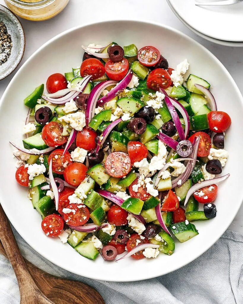 It’s a great low-calorie option that still feels satisfying and flavorful. Ideal for quick dinners or summer lunches, this salad is refreshing and easy to prepare.