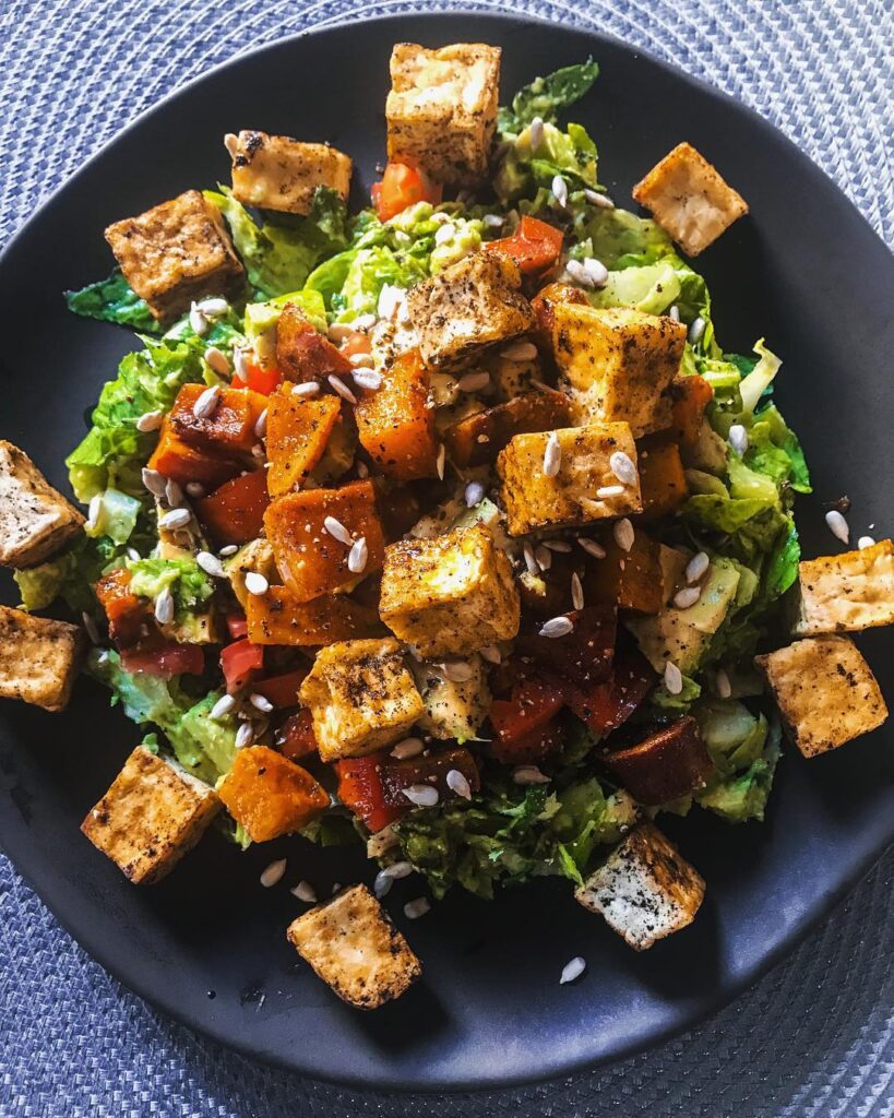 This tofu veggie salad is a great plant-based option packed with protein and nutrients. The tofu absorbs flavors beautifully, pairing well with fresh vegetables and light dressings for a refreshing dish.
