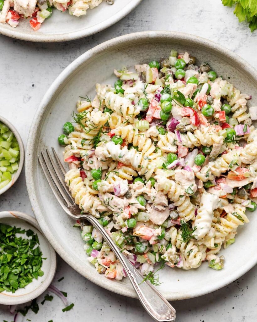 This protein pasta salad combines whole-grain or high-protein pasta with lean proteins and fresh vegetables. It’s a filling and versatile dish that works well for lunches, dinners, or gatherings.