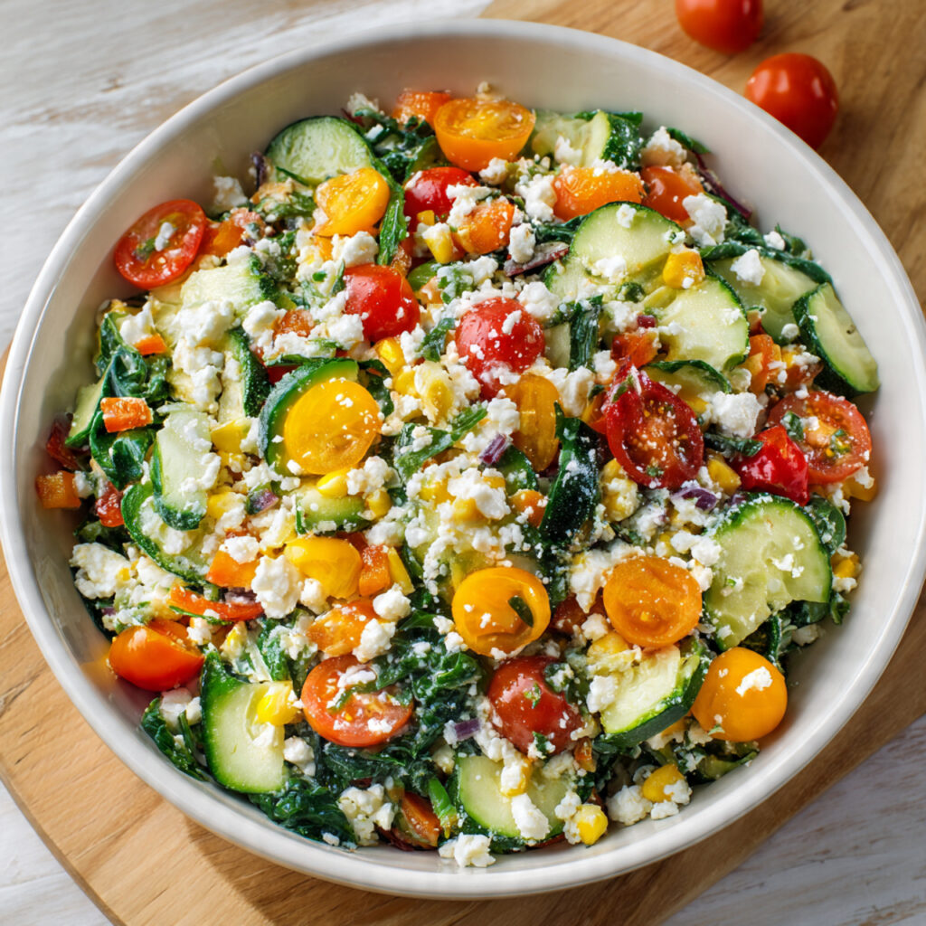 This cottage cheese veggie salad is creamy, refreshing, and packed with protein. The soft texture of cottage cheese pairs perfectly with crunchy vegetables, creating a balanced and satisfying meal.