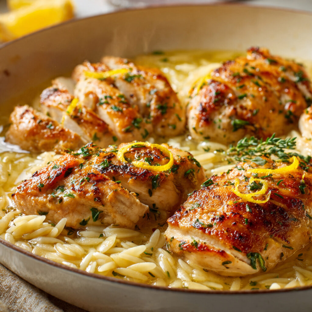 This dish is fresh, slightly tangy, and deeply comforting. The lemon adds a bright citrus note that cuts through the richness of the chicken, while herbs bring a soft, earthy flavor.